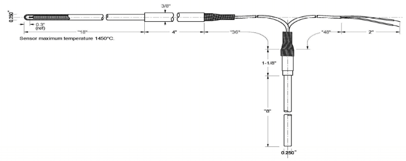 1/4"OD x 18" long alumina sheath with attached 1/4"OD x 8" |