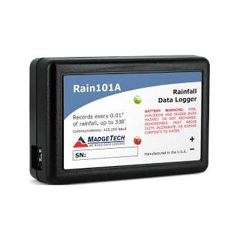 The Rain101A is a complete system to accurately measure and record rainfall over long periods of time. It comes complete with an Event101A data logger, weatherproof enclosure, tipping bucket rain gauge, 50’ of cable and the IFC200 interface cable and software package. It can record up to 6” of rainfall every hour and 338’of rainfall total. The Rain101A only records to memory when rainfall is present, maximizing the amount of time the system can record. Using the logger’s built-in Engineering Units, the data can be offloaded and displayed in user-specified units (eg. inches, centimeters). The software can “totalize” the rain bucket tips, allowing easy viewing of the accumulated rainfall over the time period of interest. The Rain101A features a 10 year battery life, 4Hz reading rate, a multiple start/stop function, ultra-high speed download capability, 406,323 reading storage capacity, optional memory wrap, battery life indicator, optional password protection and more.
