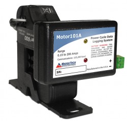 The Motor101A measures and records on and off status changes for motors or other equipment drawing up to 200 Amps. The state change occurs when the current switch exceeds the 150mA set point. This allows for most basic equipment to be monitored. The current switch monitors whether there is current passing through a wire around which it is clamped. When the current exceeds 150mA’s, the output changes and provides a voltage for the Motor101A to measure. The device can hold up to 406,323 state changes, but memory will only be used if the status has changed. The device can be programmed to check for status changes 4 times per second up to once every 24 hours