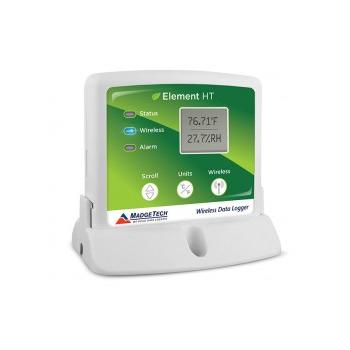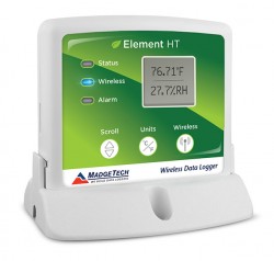 real time back to a central PC, or the device may be downloaded at periodic intervals. For real time monitoring on the go, simply connect the Element HT to MadgeTech Cloud Services, allowing data tobe accessed from any internet enabled device. The digital display provides the current reading for both the humidity and temperature channels with minimum, maximum and average statistics accessible for a quick snapshot of the logged data. The Element HT features user programmable alarm settings for both temperature and humidity parameters. An audible buzzer and LED alarm indicator notifies users when the temperature or humidity is above or below the threshold set in the alarm. This allows growers to take action faster, saving plants, time and money. Email and text alarms can also be configured and sent from within the software, allowing users to be notified almost anywhere.The Element HT can be used as a single, wireless data logging system, or it can be expanded to a large scale system, which can include hundreds of data loggers measuring a number of areas (additional MadgeTech wireless data loggers