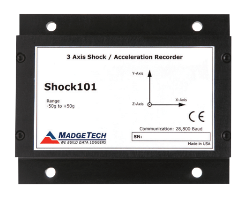 The Shock101 is a battery powered, stand alone 3-axis shock recorder. The Shock101 measures and records shock as the peak acceleration levels over the user defined interval. The Shock101 is specifically designed for documenting dynamic environments such as moving vehicles, trucks, containers, ships, etc. The device is also valuable in characterizing environments such as production and assem-bly lines of delicate equipment, IC fabrication, communications and computer components.