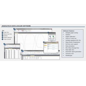 The PRHTemp2000 is perfect for applications requiring instant remote readings of environmental parameters, including temperature, humidity and atmospheric pressure. The 8-button keypad and large LCD provide convenient access to current data and recorder setup. Additionally, memory and battery levels, external power status, and sampling and recording status are shown on the LCD. Available on-screen data includes: statistics (min, max, average) for all three channels; recording status (start, stop and recording rate); display options (channels shown, units, text size); and calibration information (date calibrated, date for recalibration). Statistics can be cleared at any time during logging.n With 87,381 readings per channel, the PRHTemp2000 has one of the largest memory capacities of any similar data recorder on the market. The non-volatile memory will retain recorded data, even if AC and battery power are lost. The PRHTemp2000 typically runs up to one month on a user-replaceable 9 V battery. For power savings, both the LCD and backlight have configurable auto-off options. Those wanting to keep the LCD display and backlight continuously active need only to plug the unit to an AC power supply, keeping the 9 V battery connected as a back-up. A calibration certificate is available for users needing to meet regulatory requirements. Creating permanent records, performing data calculations, and the graphing of data is quick and easy: Simply connect the interface cable to an available USB or serial port and, with a few clicks of the mouse, data is downloaded and ready for review or export to Excel.