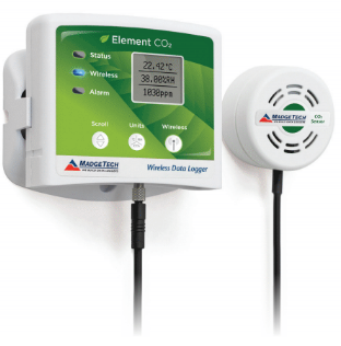 The Element CO2 can be used as a standalone data logger, or used wirelessly to transmit collected data back to a central PC for real time monitoring. Cloud monitoring is also possible with MadgeTech Cloud Services.