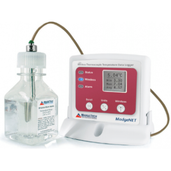 MadgeTech’s Vaccine Temperature Monitoring System (VTMS) is ideal for the continuous measure- ment and data logging of temperature sensitive vaccines or pharmaceuticals in refrigerators, freezers, and coolers. The system includes an NIST traceable RFTCTemp2000A data logger with thermocouple and Glycol bottle. Additionally, the RFTCTemp2000A data logger in the VTMS system has a convenient LCD to ensure temperature parameters are met, in real time. Starting, stopping and downloading from the device are all performed wirelessly using the RFC1000 wireless transceiver. The current reading, minimum, maximum and average statistics can all be obtained through the display.