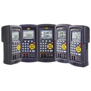 Work better and get better work with Martel TEN series multifunction calibrators. This family of 5 models scale up to do any size job you need when calibrating process instrumentation. Start at the top with the DMC-1410 documenting multifunction calibrator. It’s versatile, providing access to a complete range of calibration functions while performing automated on the fly calibration data collection and storage. A simple easy-to-use software package is included that allows the user to build a database of all assets that need calibration and download work orders to the calibrator. Next in line is the MC-1210 multifunction calibrator. It’s a rugged and reliable universal calibrator. Like all the others in this series, the MC-1210 is based on the proven reliable, accurate and stable MC-1200. It’s dual display and isolated readback allows it to power a transmitter under test while reading its milliamp output. Truly an all-in-one calibrator. The MC-1210 also has a wide range of switch test features for both pressure and temperature switches.