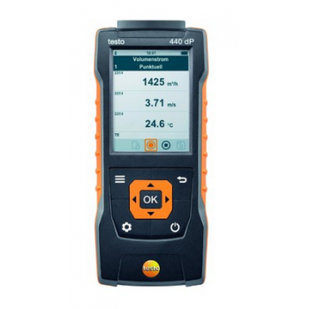 The testo 440 air velocity & IAQ measuring instrument is available in two versions. The testo 440 dP model version also has an integrated differential pressure sensor. This makes measurements at filters as well as Pitot tube and K-factor measurements possible.