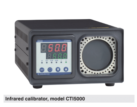 For the calibration of infrared thermometers above ambient temperature, the model CTI5000 is suitable up to 500 °C (932 °F). Due to its stability, the new portable infrared calibrator is particularly suited to the calibration of infrared hand-held thermometers. The black body has a large diameter so that a wide variety of infrared thermometers can be tested, no matter which lenses are fitted. The emissivity is fixed at 0.95 and the temperature can be controlled in steps of 0.1 °C. To check the black body, there is a bore located directly behind the surface so that the measurement can be made with contact and the quality monitored.